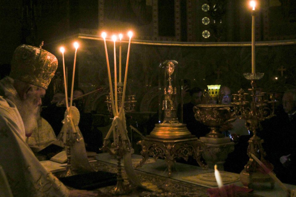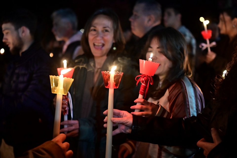 Μέσα σε ένα πανηγυρικό κλίμα (κάτω από μία τεταμένη περίοδο στην περιοχή), πάνω από 2.500 πιστοί μπόρεσαν να μπουν στον χώρο με ειδικό βραχιολάκι που τους έδωσαν οι Αρχές για να παρακολουθήσουν την τελετή αφής του Αγίου Φωτός.