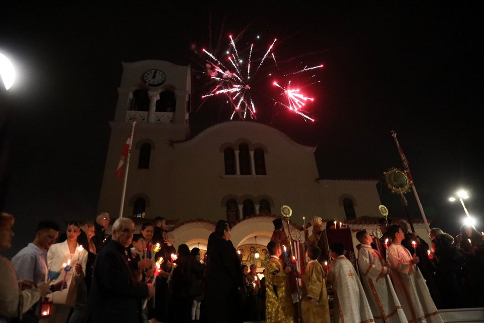 Χιλιάδες πιστοί συνέρρευσαν σε εκκλησίες ανά τη χώρα για να ψάλουν το «Χριστός Ανέστη», συνοδεία βεγγαλικών που έκαναν τη νύχτα μέρα.