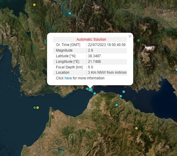 Σεισμός 2,9 Ρίχτερ σημειώθηκε στις 9 το βράδυ του Σαββάτου στο Αντίριο, ο οποίος έγινε αισθητός στην Πάτρα.