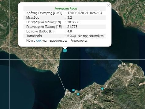 Πιο συγκεκριμένα, το επίκεντρο εντοπίστηκε 6 χιλιόμετρα νοτιοδυτικά της Ναυπάκτου και 14 χιλιόμετρα βόρεια της Πάτρας, με το εστιακό βάθος να προσδιορίζεται στα πέντε χιλιόμετρα.