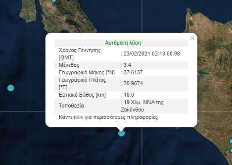 Σεισμός της τάξεως των 3,4 βαθμών της κλίμακας Ρίχτερ, σημειώθηκε τα ξημερώματα νότια της Ζακύνθου.