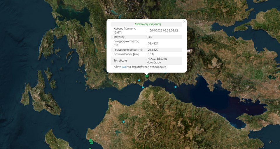 Ασθενής σεισμική δόνηση έγινε αισθητή στις 8:40 το πρω στην Ναύπακτο, στο Αντίρριο, στην Πάτρα και σε άλλες περιοχές της Αιτωλοακαρνανίας και της Αχαΐας.