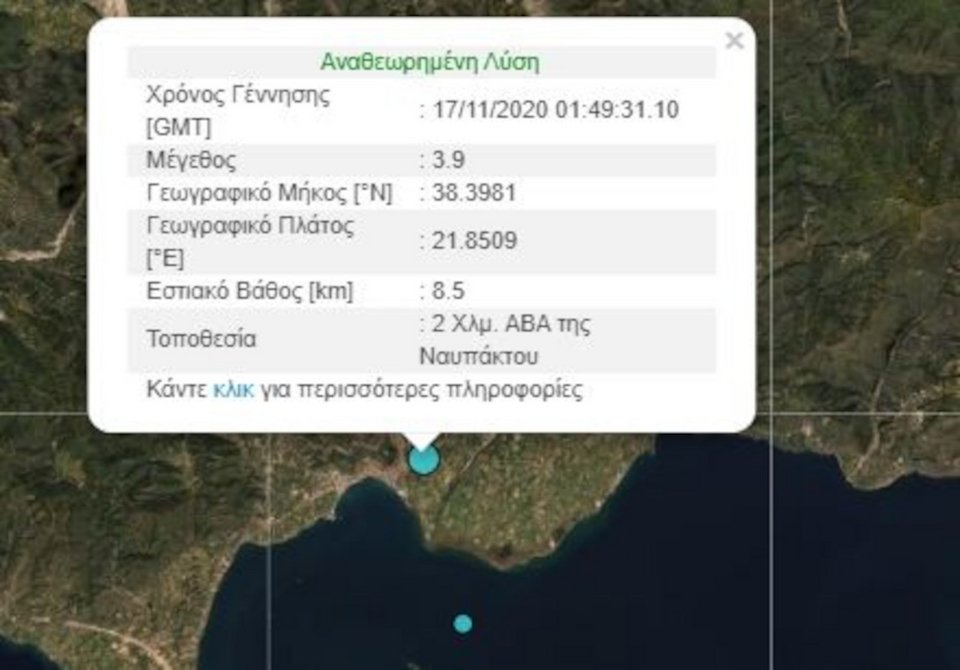 Σύμφωνα με το Γεωδυναμικό Ινστιτούτο Αθηνών, ο σεισμός σημειώθηκε στις 3:49 τα ξημερώματα της Τρίτης και το επίκεντρο εντοπίστηκε στα 2 χιλιόμετρα, ανατολικά -βορειοανατολικά της πόλης της Ναυπάκτου.