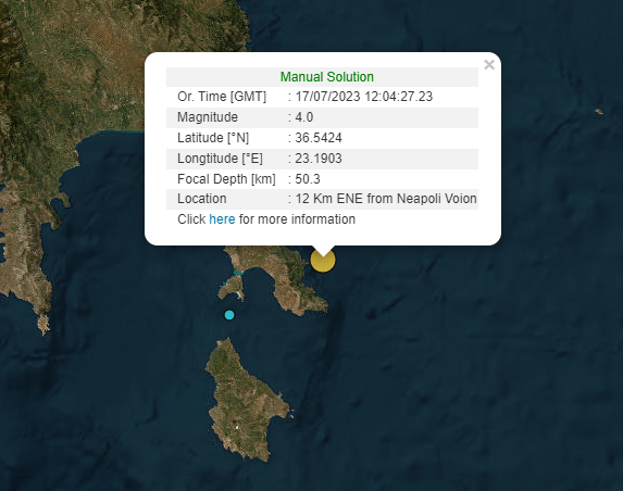 Σύμφωνα με την αναθεωρημένη λύση του Γεωδυναμικού Ινστιτούτου του Εθνικού Αστεροσκοπείου Αθηνών, ο σεισμός είχε μέγεθος 4 βαθμών της κλίμακας Ρίχτερ και το επίκεντρο εντοπίστηκε στον θαλάσσιο χώρο, 12 χιλιόμετρα ανατολικά, βορειοανατολικά της Νεάπολης Βοιών.