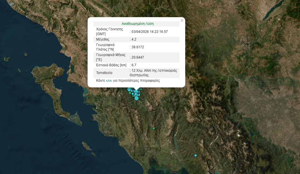 Ισχυρή σεισμική δόνηση μεγέθους 4,2 Ρίχτερ σημειώθηκε στην Θεσπρωτία.