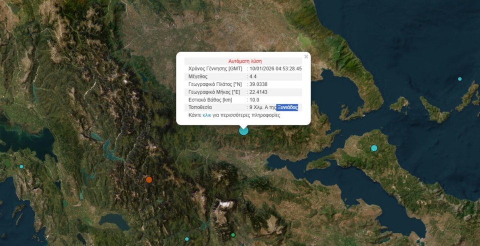 Ισχυρός σεισμός μεγέθους 4,4 βαθμών της κλίμακας Ρίχτερ, σημειώθηκε στις 6:53’ το πρωί του Σαββάτου στην Φθιώτιδα, κοντά στην Κοινότητα Δίβρης.