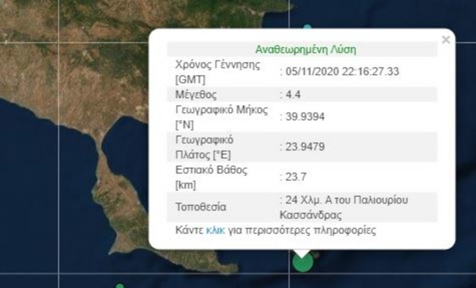 Δυνατός σεισμός ταρακούνησε λίγο μετά τα μεσάνυχτα την Χαλκιδική.