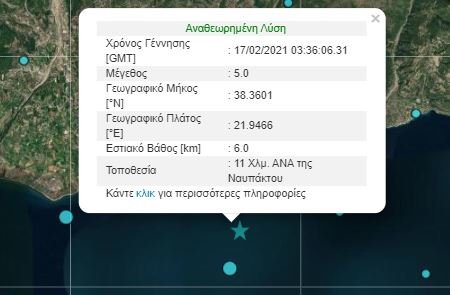 Ισχυρός σεισμός της τάξεως των 5 βαθμών της κλίμακας Ρίχτερ σημειώθηκε νωρίς το πρωί στην θαλάσσια περιοχή μεταξύ Ναυπάκτου και Πάτρας.