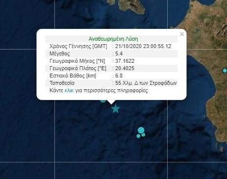 Ισχυρός σεισμός, μεγέθους 5,4 βαθμών της κλίμακας Ρίχτερ, σημειώθηκε σε θαλάσσια περιοχή ανοιχτά της Ζακύνθου.