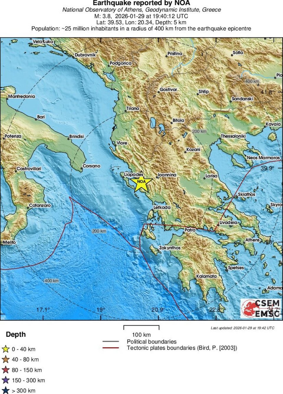 Από την πλευρά του, το Ευρωμεσογειακό Ινστιτούτο κάνει λόγο για σεισμό 3,8 Ρίχτερ, με το επίκεντρο της δόνησης να υπολογίζεται στα 7 χιλιόμετρα