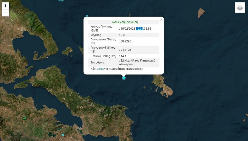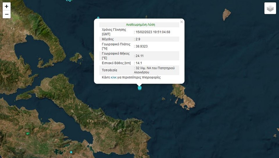 Η πρώτη δόνηση σημειώθηκε στις 21:36 και είχε μέγεθος 3 Ρίχτερ, με επίκεντρο 32 χλμ. νοτιοανατολικά του Πατητηριού Αλοννήσου, σε εστιακό βάθος 14,1 χιλιομέτρων.