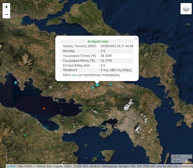 Σεισμός 3,9 Ρίχτερ σημειώθηκε πριν από λίγα λεπτά στη Θήβα.