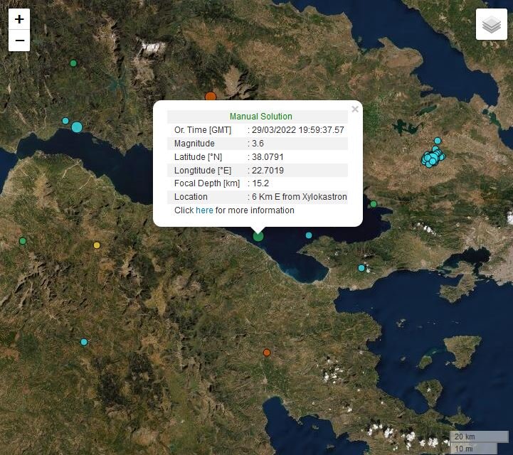 Σεισμός μεγέθους 3,6 της Κλίμακας Ρίχτερ σημειώθηκε στο Ξυλόκαστρο.