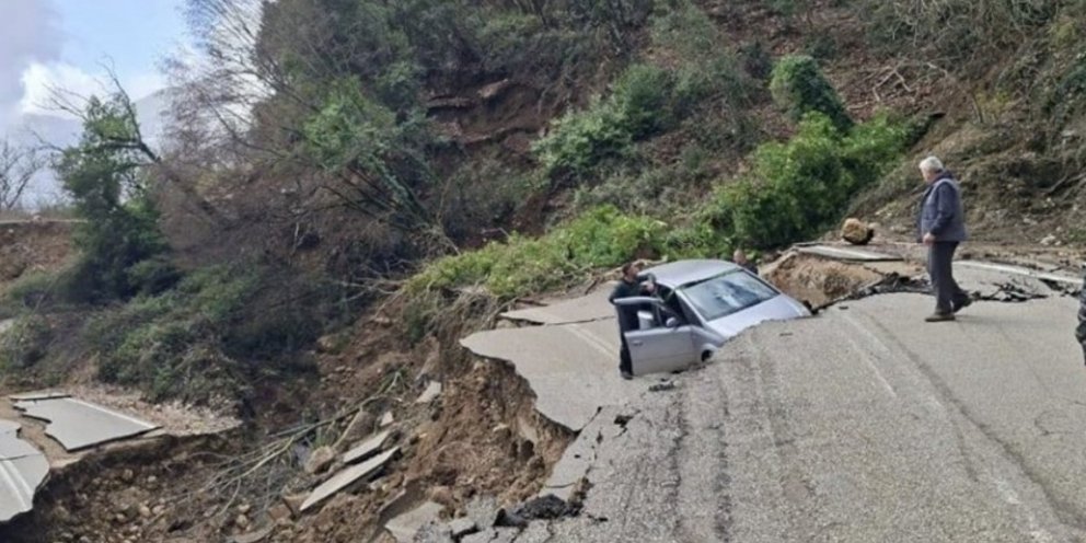 Στην επαρχιακή οδό Πραμάντων – Ιωαννίνων, κοντά στα Τζουμέρκα, ο δρόμος έχει κυριολεκτικά «κοπεί στα δύο». Οι εικόνες από το σημείο δείχνουν το έδαφος να έχει σηκωθεί και να έχει σχηματιστεί μεγάλη ρωγμή, ενώ ένα αυτοκίνητο χρειάστηκε γερανό για να απομακρυνθεί.