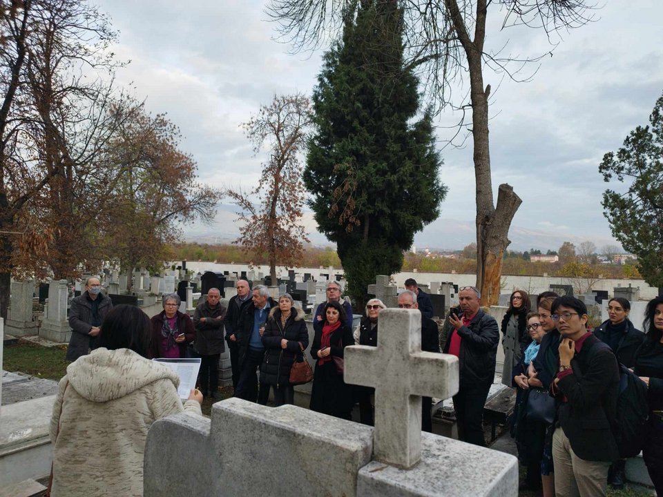 Ακολούθησε η επίσκεψη στο κοιμητήριο Butel, όπου ανάμεσα στον κόσμο, μία παρέα Ιαπώνων σχολίαζε το έργο του παγκόσμιου συγγραφέα, μιλώντας με τους γύρω της στα ελληνικά.