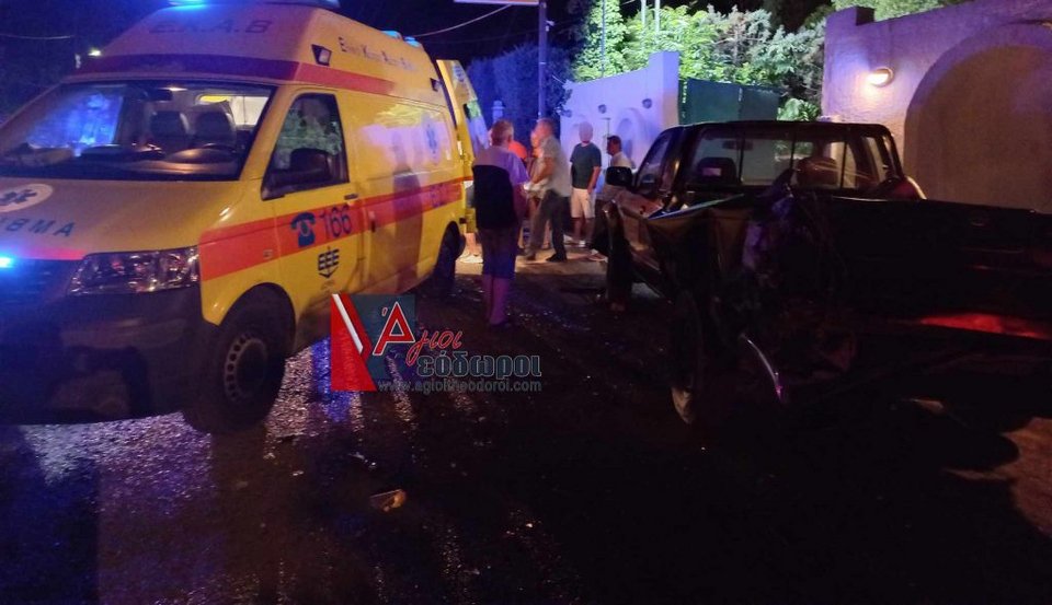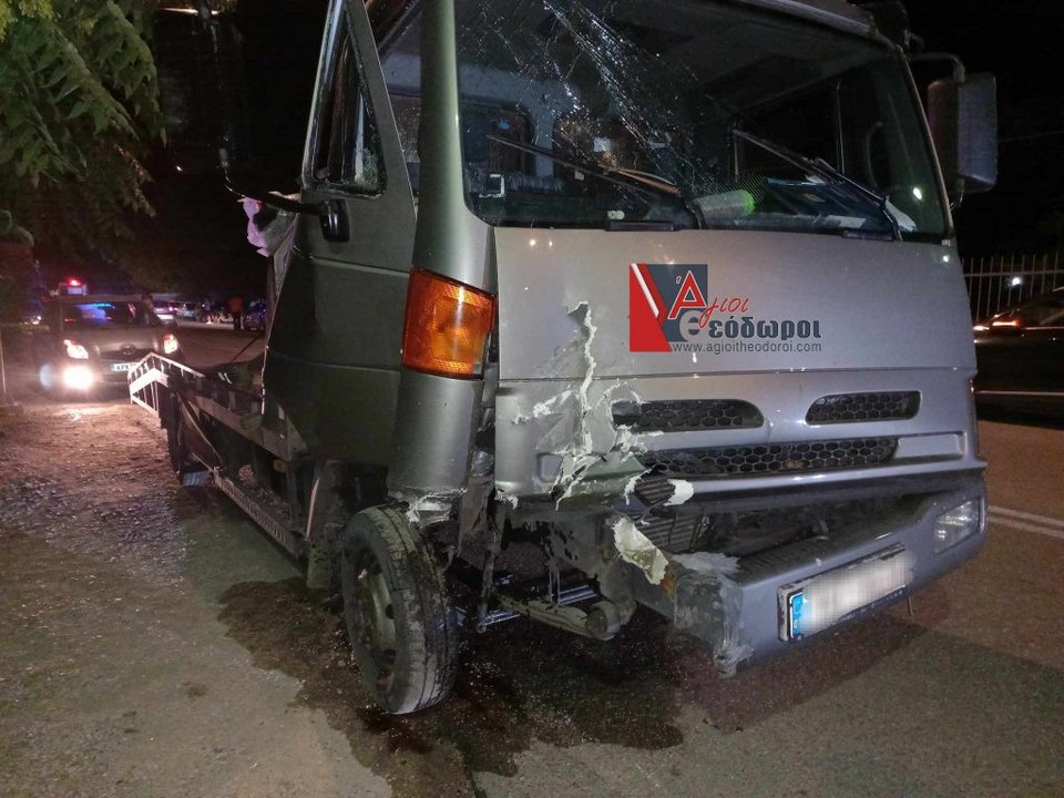 Σύμφωνα με το agioitheodoroi.com, φορτηγάκι με κατεύθυνση προς Κόρινθο προσέκρουσε σε αγροτικό αυτοκίνητο με αποτέλεσμα το 2ο να παρασύρει τους δύο νεαρούς οι οποίοι ήταν πεζοί και εκείνη την στιγμή έμπαιναν στην οικία τους.