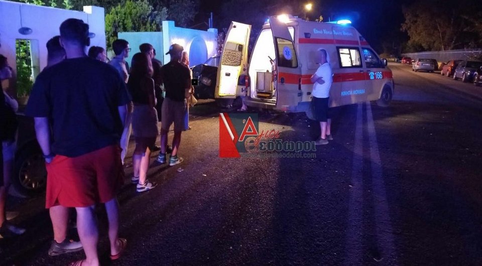 Σοβαρό τροχαίο ατύχημα σημειώθηκε λίγα λεπτά πριν τα μεσάνυχτα στα Πευκάκια στους Αγίους Θεοδώρους με δύο τραυματίες 25-30 ετών.