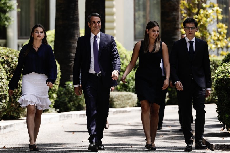 Τα τρία παιδιά του και η γυναίκα του. Ο Κυριάκος Μητσοτάκης, τις πρώτες του ώρες ως πρωθυπουργός τις πέρασε έχοντας στο πλευρό του την οικογένειά του.
