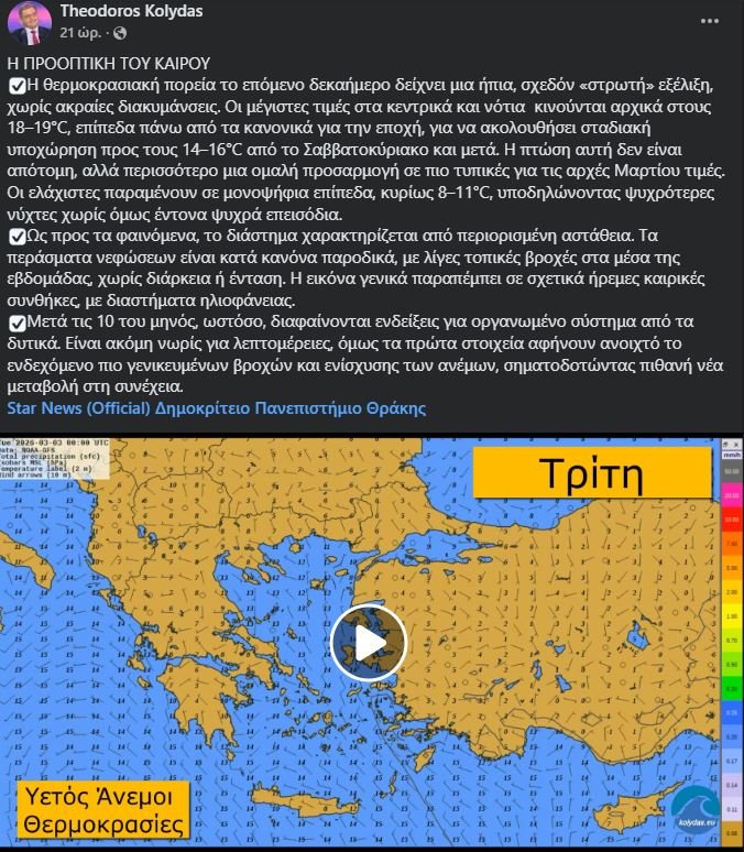 «ΠΡΟΓΝΩΣΗ ΓΙΑ ΣΗΜΕΡΑ ΤΡΙΤΗ 03-03-2026