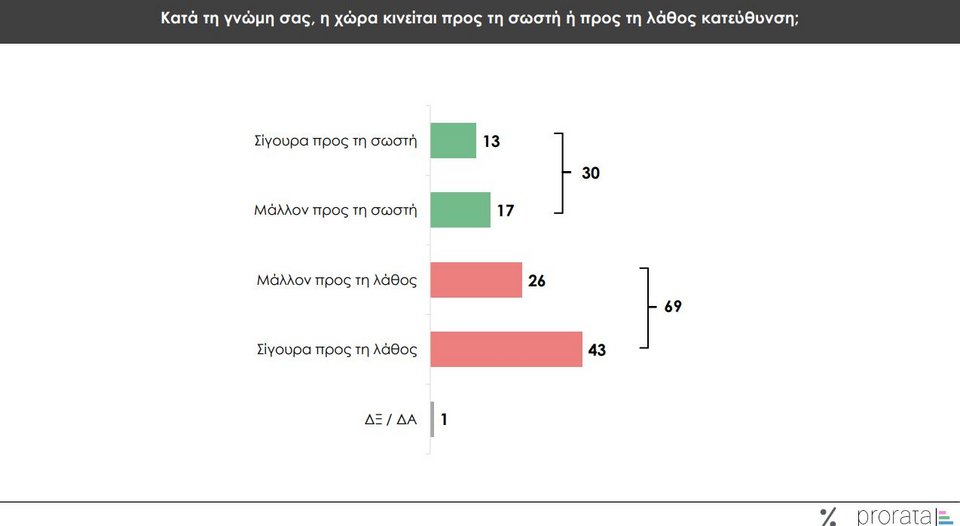 Στο ερώτημα για το αν η χώρα πάει προς την σωστή κατεύθυνση, το 30% υποστηρίζει πως «ναι».