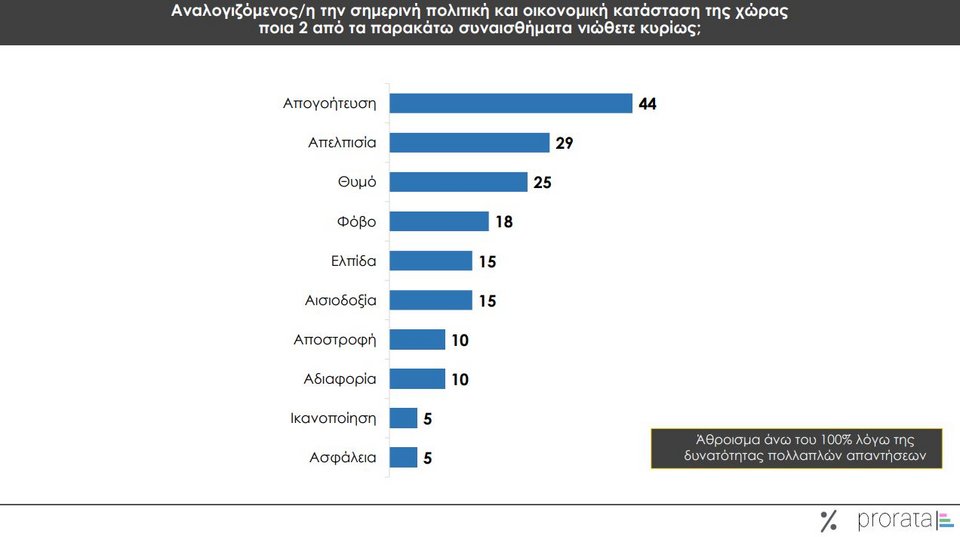 Στο πώς αισθάνονται για την οικονομική κατάσταση της χώρας, το 44% δήλωσε «απογοητευμένο»