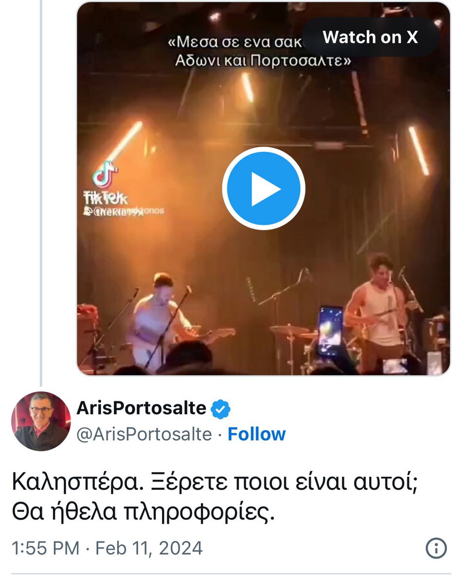 Αντίστοιχα χθες και ο Άρης Πορτοσάλτε έγραψε: «Καλησπέρα. Ξέρετε ποιοι είναι αυτοί; Θα ήθελα πληροφορίες», προαναγγέλλοντας ότι θα κινηθεί νομικά.
