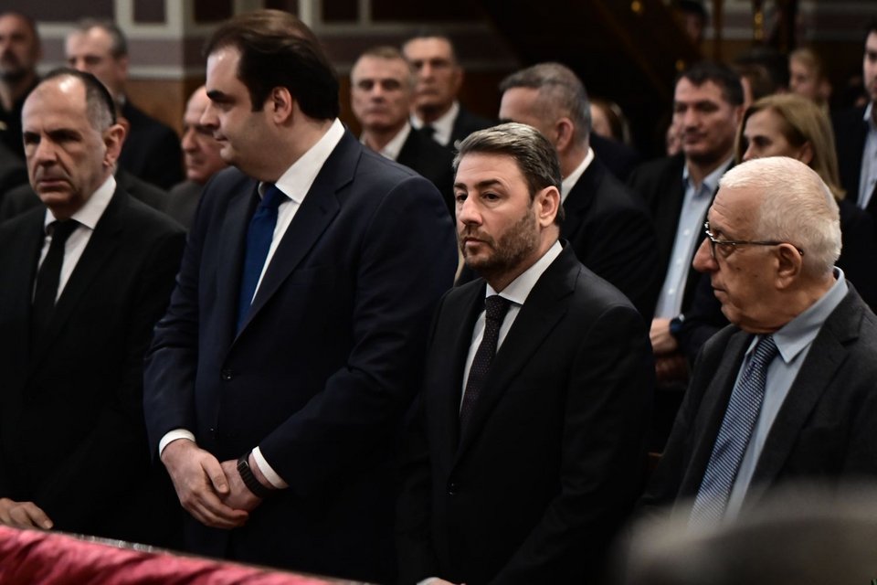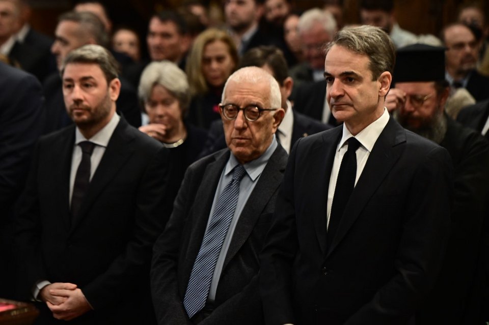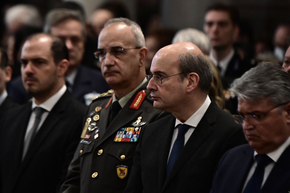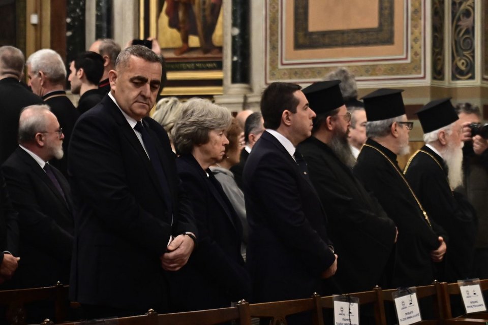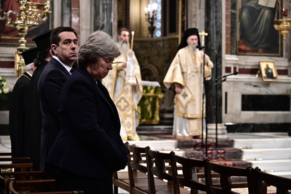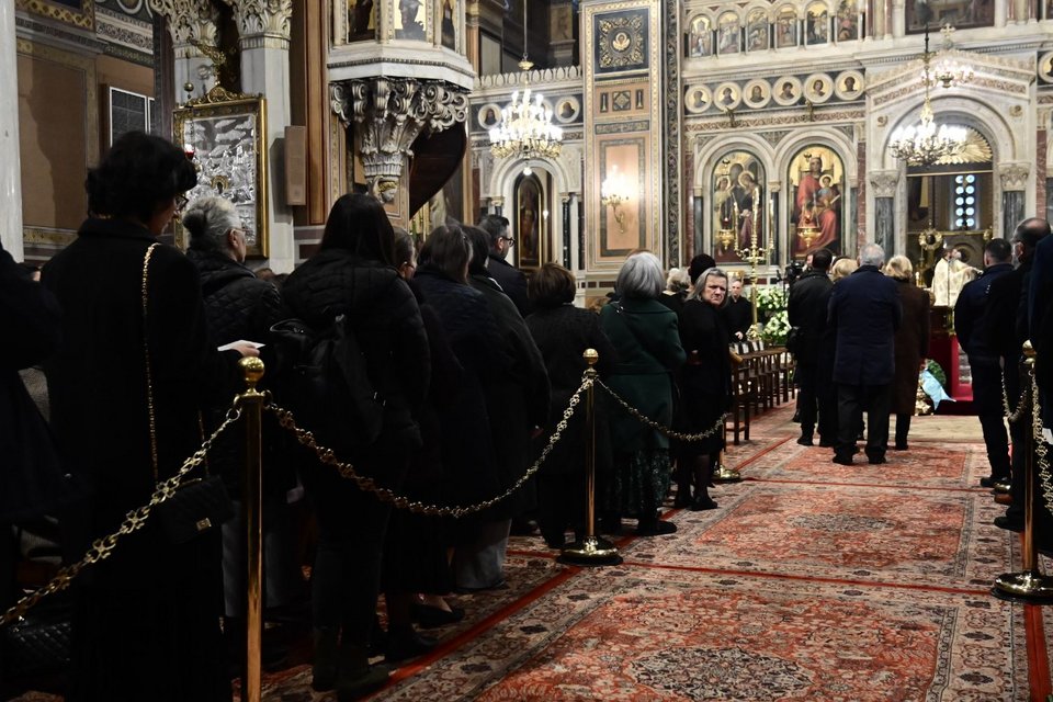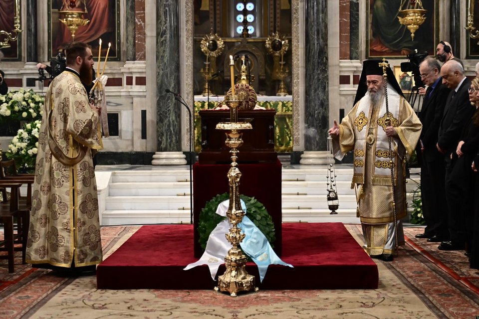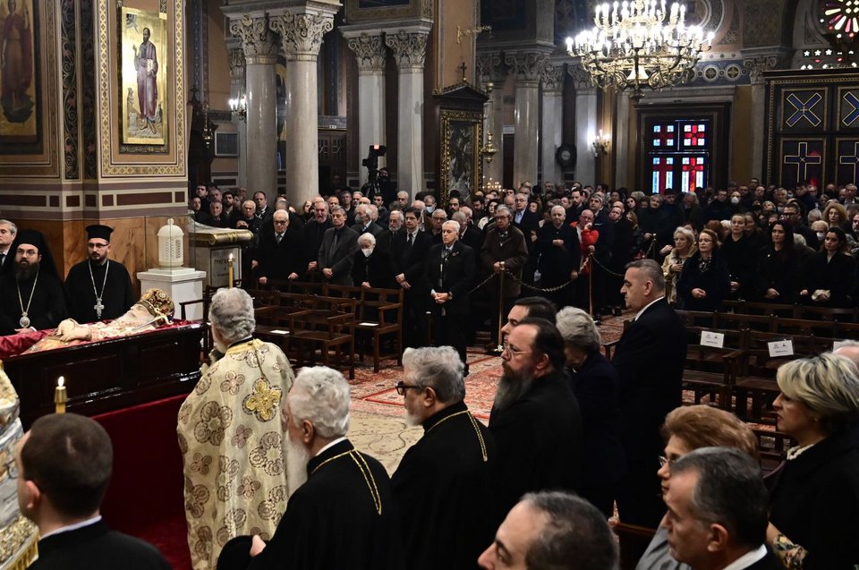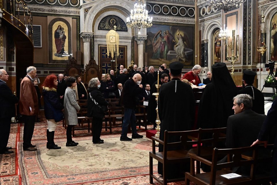 Νωρίτερα τελέστηκε θεία λειτουργία από τον Αντιπρόεδρο της Ιεράς Συνόδου, Σεβ. Μητροπολίτη Ναυπάκτου κ. Ιερόθεο, ενώ ακολούθησε το τρισάγιο, το οποίο τελέστηκε από τον Αρχιεπίσκοπο Αθηνών και πάσης Ελλάδος κ. Ιερώνυμο, παρουσία και του Πρωθυπουργού κ. Κυριάκου Μητσοτάκη, του αρχηγού της αξιωματικής αντιπολίτευσης Νίκου Ανδρουλάκη και της της ΠτΔ Κατερίνας Σακελλαροπούλου.