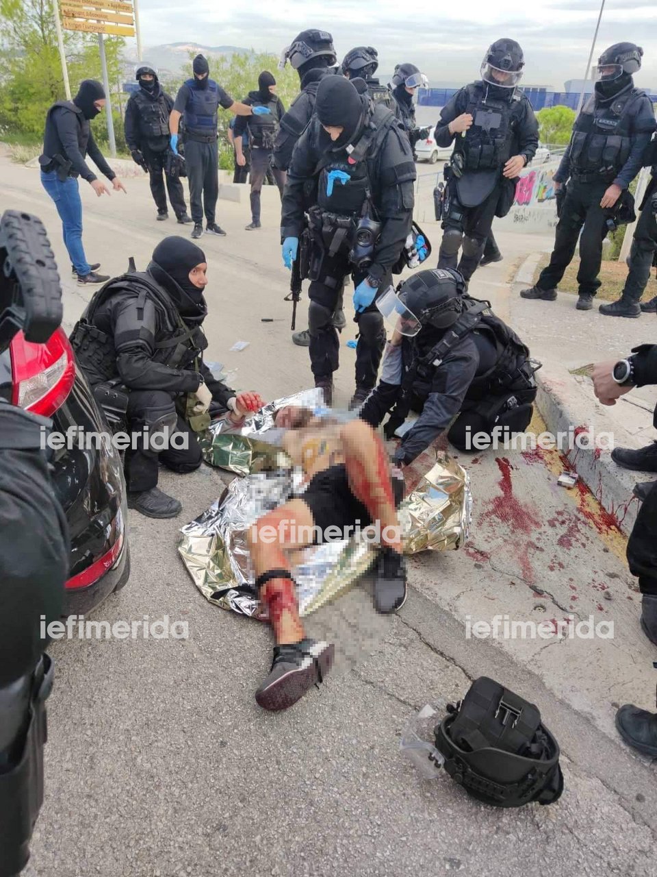 Μόλις ο 30χρονος κακοποιός έμαθε για τις συλλήψεις των μελών της οικογένειάς του φέρεται να μετέβη στο ΑΤ Ζωγράφου εξυβρίζοντας τους αστυνομικούς. Στη συνέχεια πήγε στην Πολυτεχνειούπολη, και όταν είδε τη γυναίκα αστυνομικό της επιτέθηκε με το κατσαβίδι, με εκείνη να τον πυροβολεί. Στη συνέχεια, άνδρες των ΕΚΑΜ του έδωσαν τις πρώτες βοήθειες και λίγο αργότερα ασθενοφόρο τον μετέφερε στον Ερυθρό Σταυρό, όπου και νοσηλεύεται φρουρούμενος.
