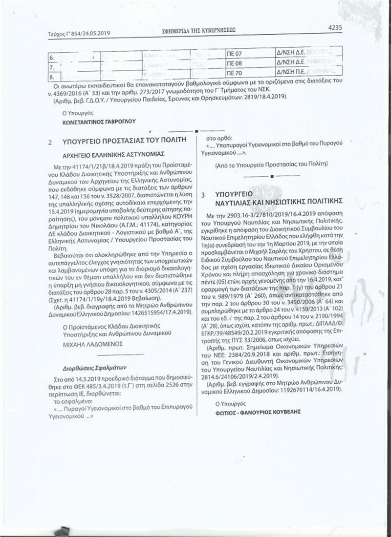 Τα σχετικά έγγραφα για τη μετάταξη της συζύγου του κ. Θεοχαρόπουλου