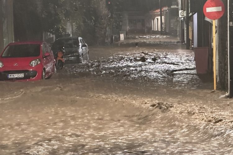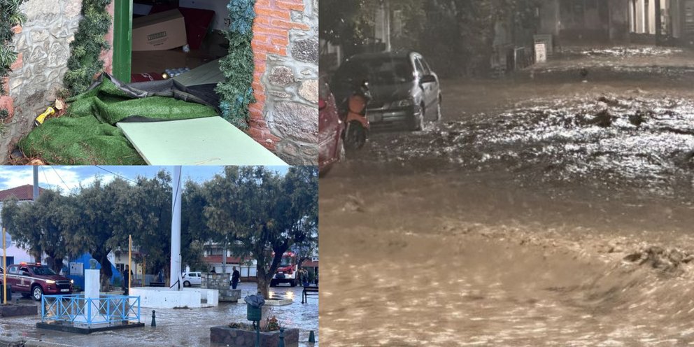 Σφοδρή καταιγίδα έπληξε τη Σκάλα Καλλονής και ευρύτερα τη Δυτική Λέσβο, προκαλώντας εκτεταμένες πλημμύρες, ζημιές σε σπίτια και επιχειρήσεις και σημαντικά προβλήματα στην κυκλοφορία.