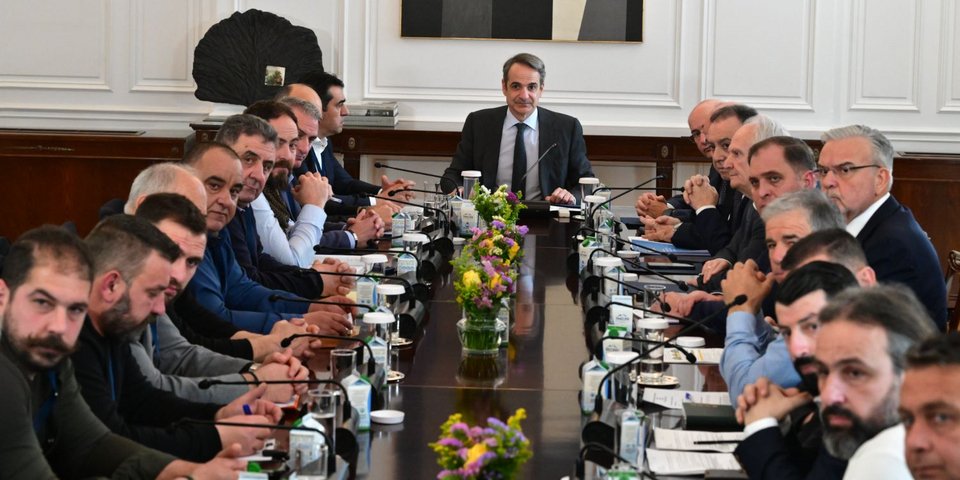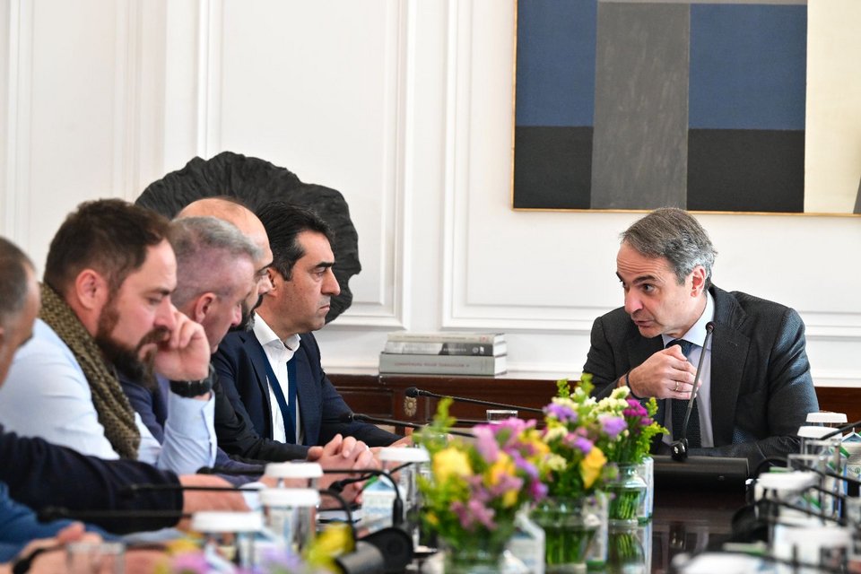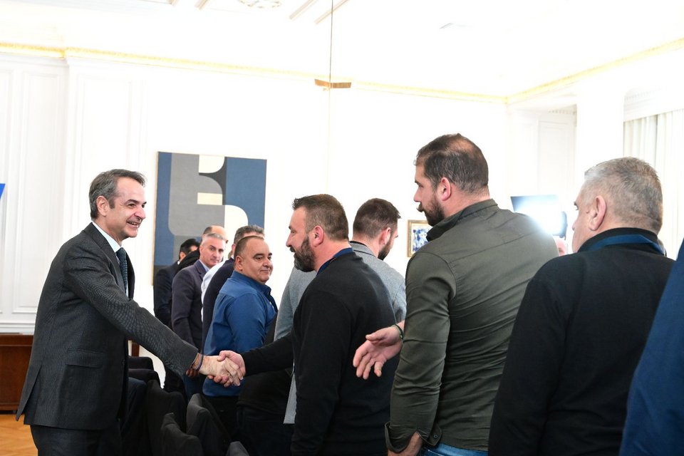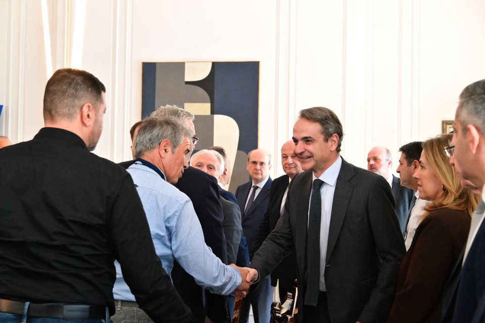 Ο Πρωθυπουργός Κυριάκος Μητσοτάκης συναντήθηκε με εκπροσώπους κτηνοτρόφων στο Μέγαρο Μαξίμου, σε συνέχεια του θεσμικού διαλόγου της κυβέρνησης με παραγωγούς για την επίλυση των ζητημάτων που αντιμετωπίζει ο πρωτογενής τομέας και με επίκεντρο τον σχεδιασμό του μέλλοντός του, ώστε να διασφαλιστεί η εξωστρεφής ανάπτυξή του, η πιστοποίηση και ανταγωνιστικότητα των ελληνικών προϊόντων, αλλά και η ανθεκτικότητα της ελληνικής παραγωγής.