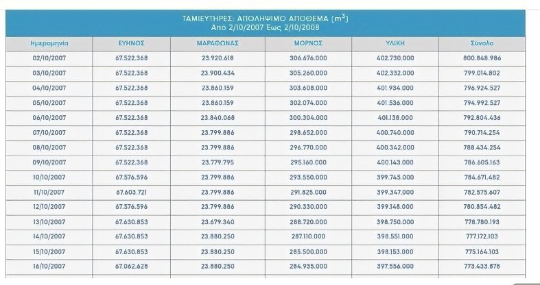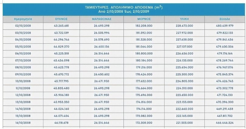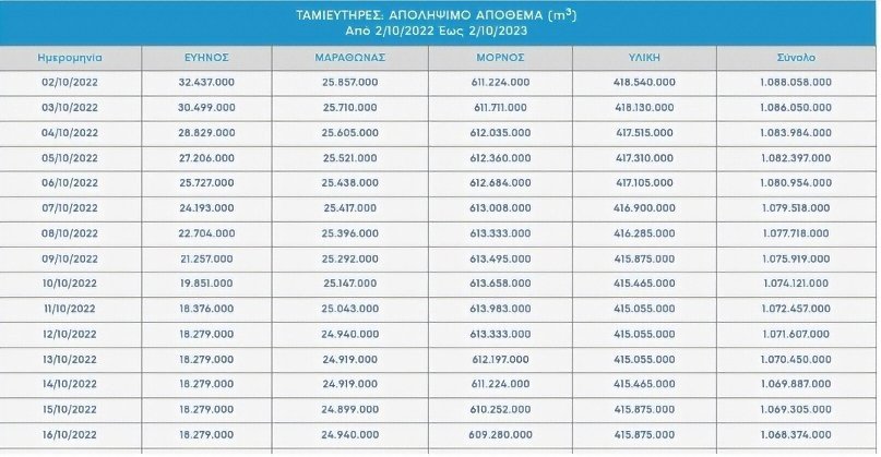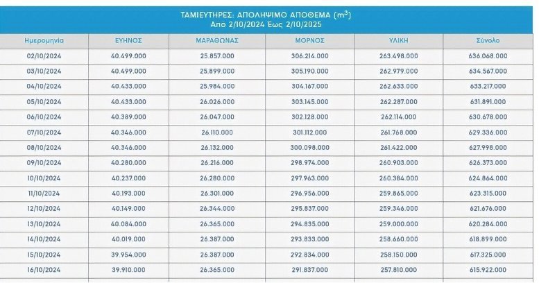 Τα αποθέματα στους τέσσερις ταμιευτήρες: