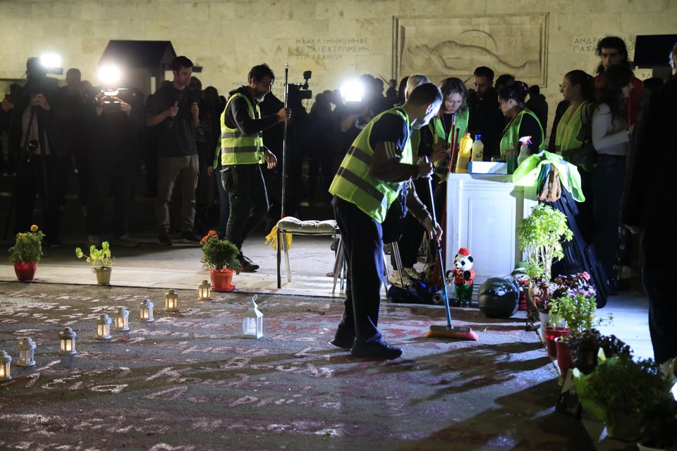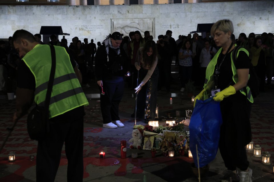 Το βράδυ της Κυριακής (26/10) περίπου 30-40 αλληλέγγυοι συγκεντρώθηκαν στο Μνημείο του Αγνώστου Στρατιώτη, στο σημείο όπου αναγράφονται τα 57 ονόματα των θυμάτων της τραγωδίας στα Τέμπη, και προχώρησαν σε καθαριότητα του χώρου.