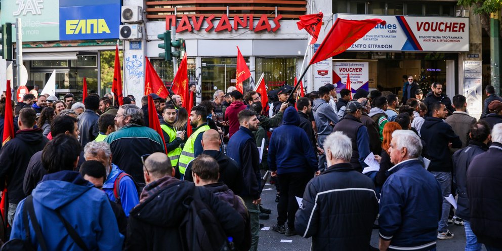 Η κινητοποίηση που λαμβάνει χώρα στο κέντρο της Αθήνας γίνεται στον απόηχο του θανατηφόρου εργατικού δυστυχήματος στο Ελληνικό.