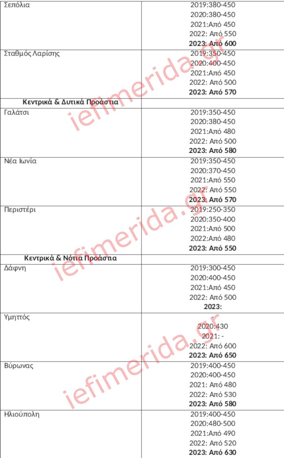 Σύμφωνα με το Πανελλαδικό Κτηματομεσιτικό Δίκτυο E- Real Estates, στις περιοχές του κέντρου των Αθηνών η αναζήτηση κατοικίας με μίσθωμα έως 300€ καταγράφεται μηδενική, ενώ, πλέον, 7 στα 10 διαθέσιμα προς μίσθωση ακίνητα (άνω του 1ου ορόφου έως 50 τ.μ.) έχουν ζητούμενο μίσθωμα άνω των 400€/μήνα και τα μισά απ’ αυτά το ζητούμενο μίσθωμα κυμαίνεται από 500€ έως 600€.