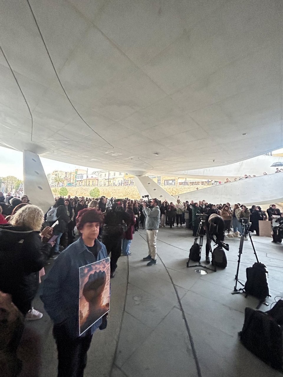 Λόγω της βροχής, η συγκέντρωση που προγραμματίστηκε για τις 17:00 το απόγευμα, μετακινήθηκε στο κάτω μέρος της πλατείας, μεγάλο μέρος της οποίας είναι στεγασμένο, ενώ πολύς κόσμος συνεχίζει να φτάνει στον χώρο.