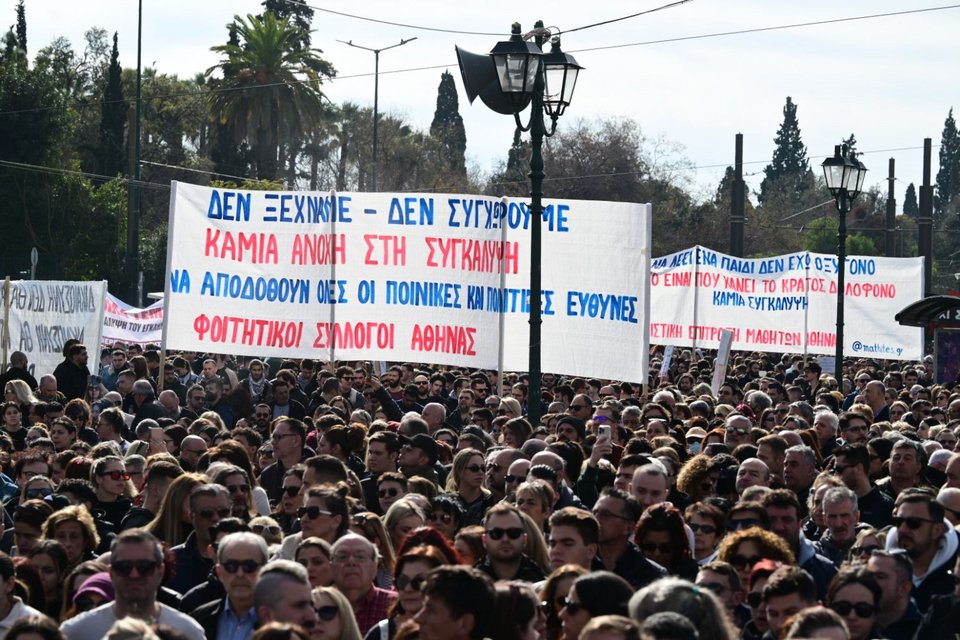 Με κεντρικό σύνθημα «δεν έχω οξυγόνο», οι οικογένειες των θυμάτων, πολλές εκ των οποίων παρέστησαν στη συγκέντρωση του Συντάγματος, σωματεία, σύλλογοι και απλοί πολίτες διαδήλωσαν σήμερα μετά και το κάλεσμα του Συλλόγου Συγγενών Θυμάτων των Τεμπών, που ζητούν δικαίωση, άμεση έρευνα για τα αίτια της τραγωδίας και απόδοση δικαιοσύνης.