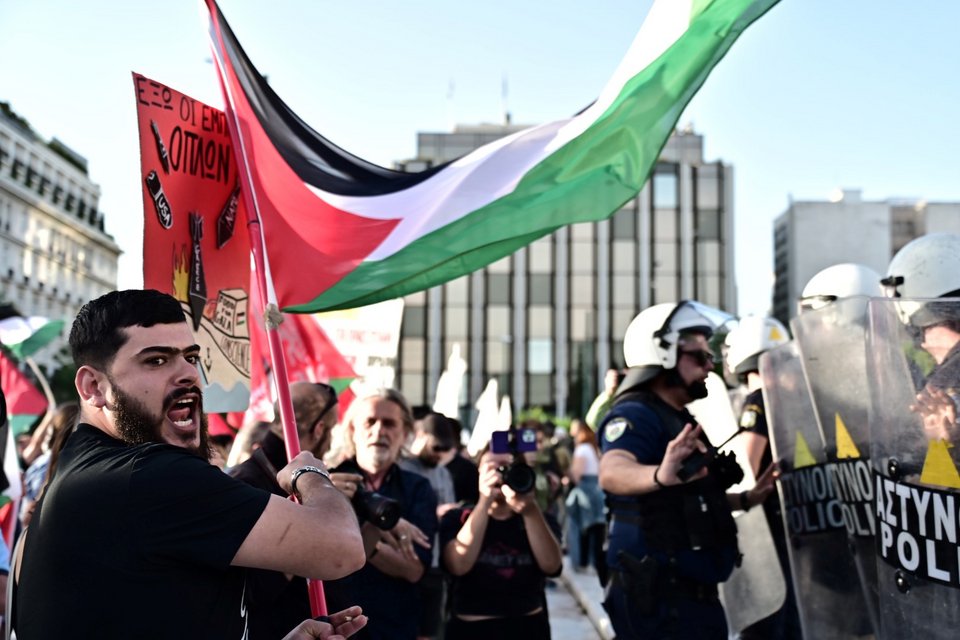 Συγκέντρωση διαμαρτυρίας πραγματοποιείται αυτή την ώρα στο Σύνταγμα από παλαιστινιακές συλλογικότητες με αίτημα να σταματήσει ο πόλεμος στη Γάζα.