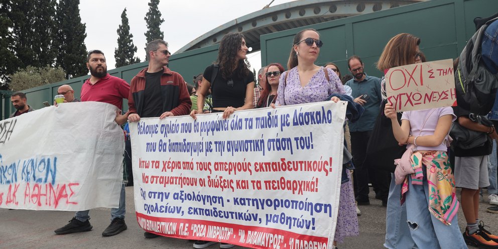 Συγκέντρωση διαμαρτυρίας πραγματοποίησαν σήμερα το μεσημέρι εκπαιδευτικοί, γονείς και μαθητές έξω από το υπουργείο Παιδείας στο Μαρούσι.