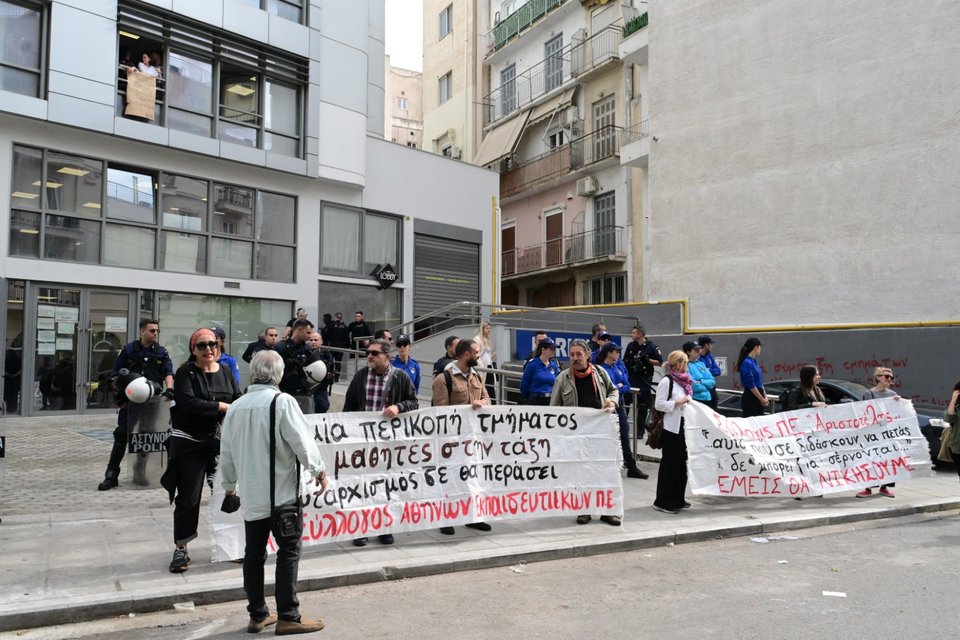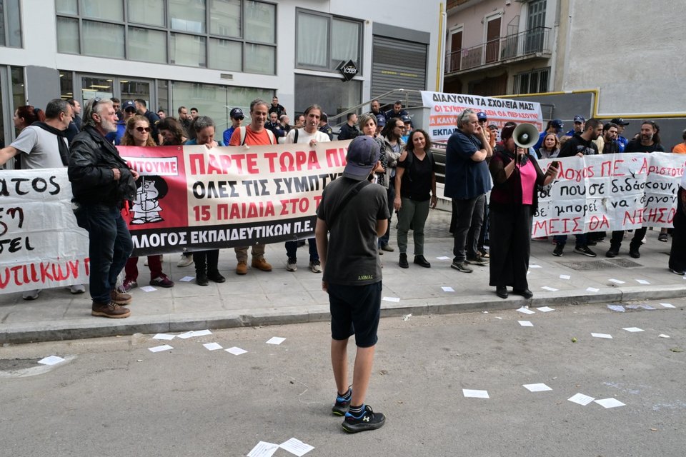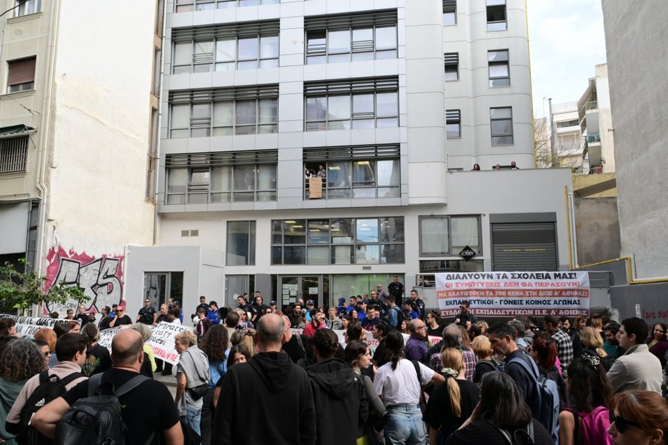 Σε εξέλιξη βρίσκεται συγκέντρωση διαμαρτυρίας έξω από τη Διεύθυνση Πρωτοβάθμιας Εκπαίδευσης Α’ Αθηνών, στην πλατεία Βάθης.