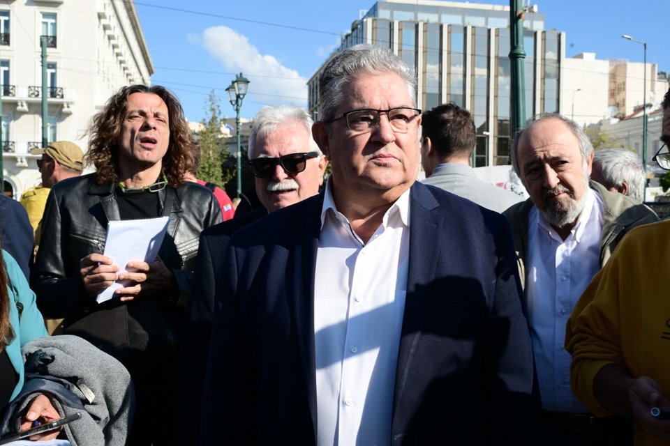 Στο Σύνταγμα βρίσκεται και ο Γενικός Γραμματέας του ΚΚΕ, Δημήτρης Κουτσούμπας, μαζί με αντιπροσωπεία του κόμματος.