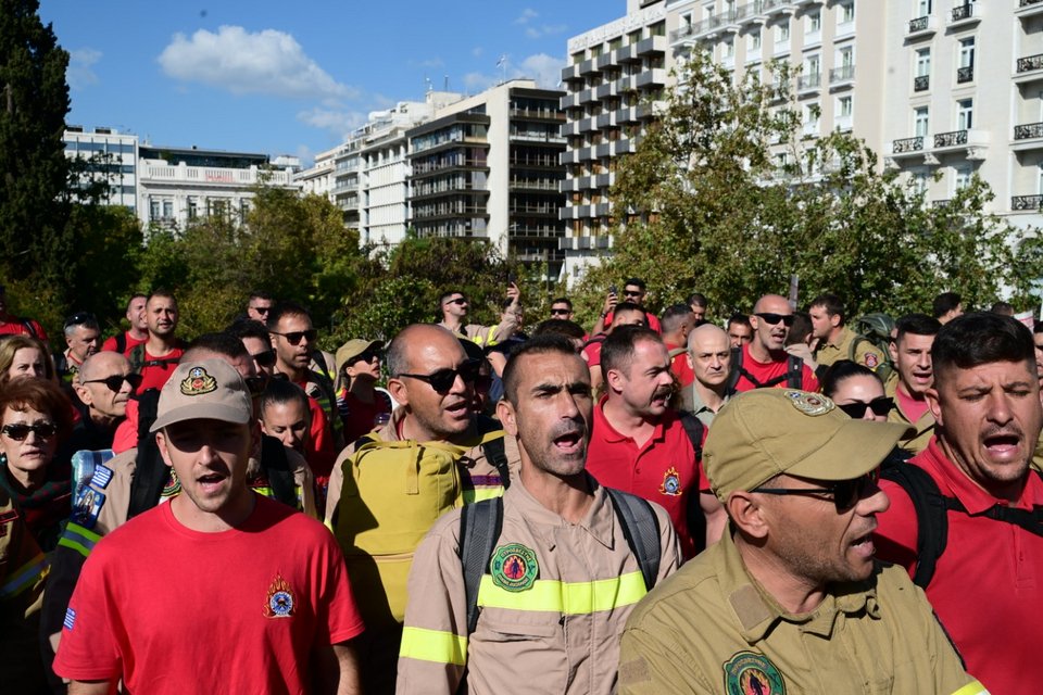Εικόνες από τη συγκέντρωση των εποχικών πυροσβεστών στο Σύνταγμα