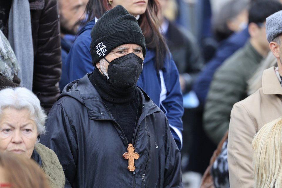 Εξω από το Βελίδειο έγινε η συγκέντρωση, που πραγματοποιείται υπό την αιγίδα των Ιερών Μητροπόλεων Θεσσαλονίκης, Νεαπόλεως και Σταυρουπόλεως και Νέας Κρήνης και Καλαμαριάς.