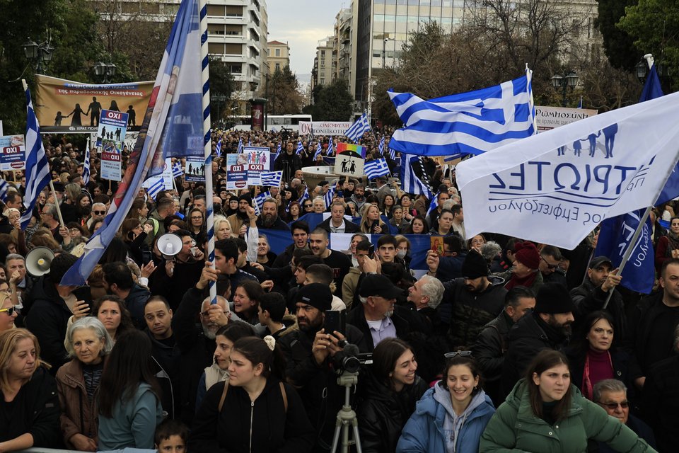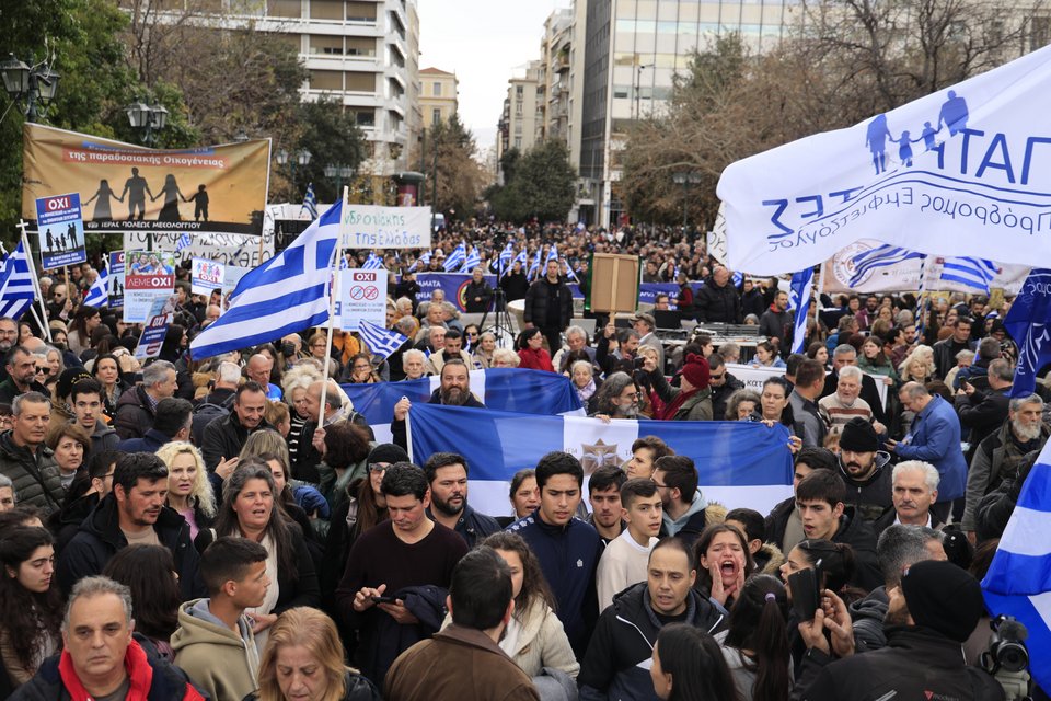 Μερικές εκατοντάδες κόσμου μαζεύτηκε στο συλλαλητήριο που πραγματοποιήθηκε στο Σύνταγμα, κατά του νομοσχεδίου για τα ομόφυλα ζευγάρια.