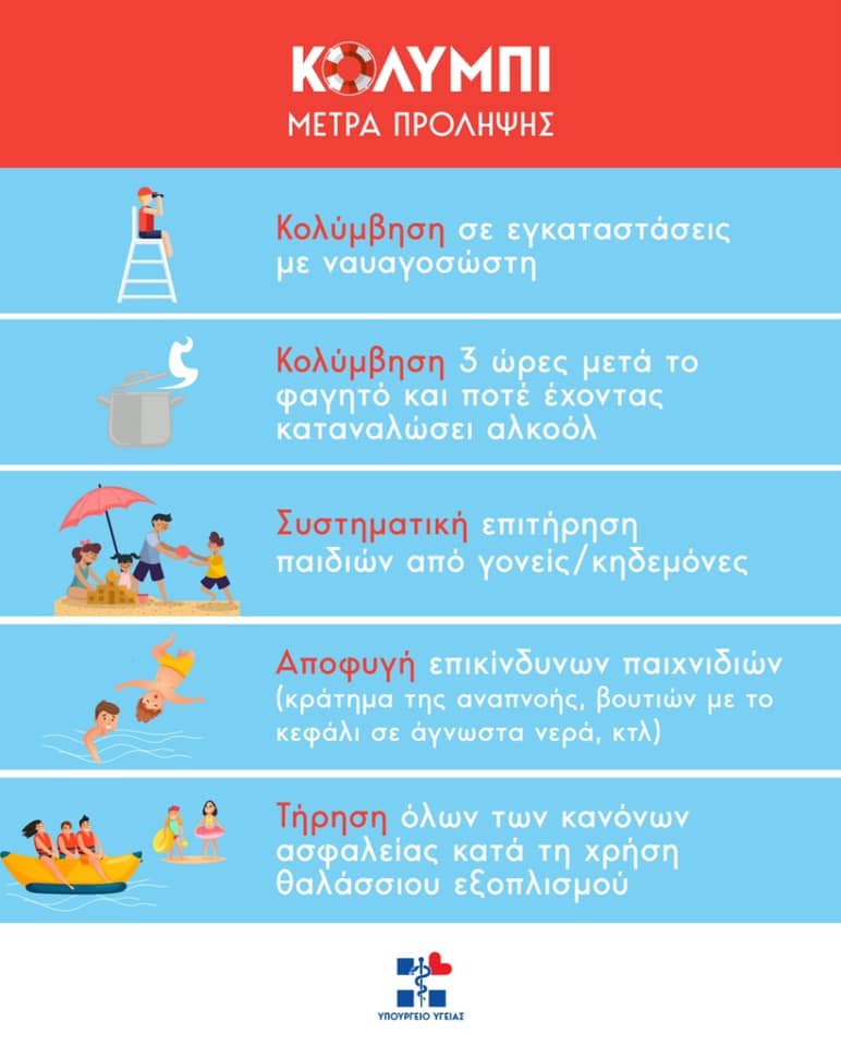 Σήμερα, το υπουργείο Υγείας, ανέβασε αφίσα στο Facebook, στην οποία δίνονται οδηγίες για το πώς μπορούμε να κολυμπάμε με ασφάλεια και να μην κινδυνεύουμε με πνιγμό.