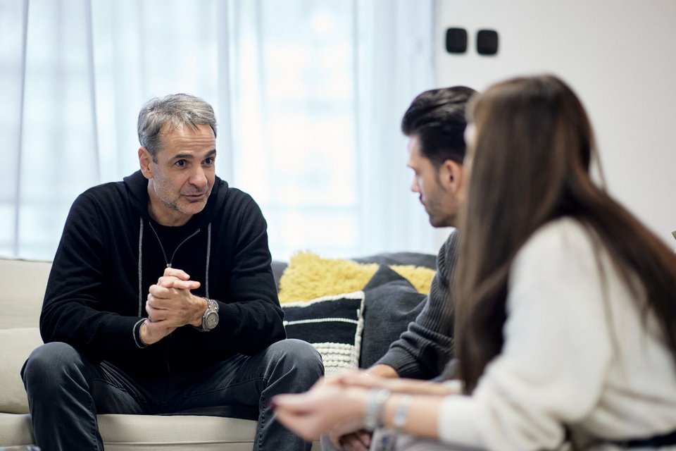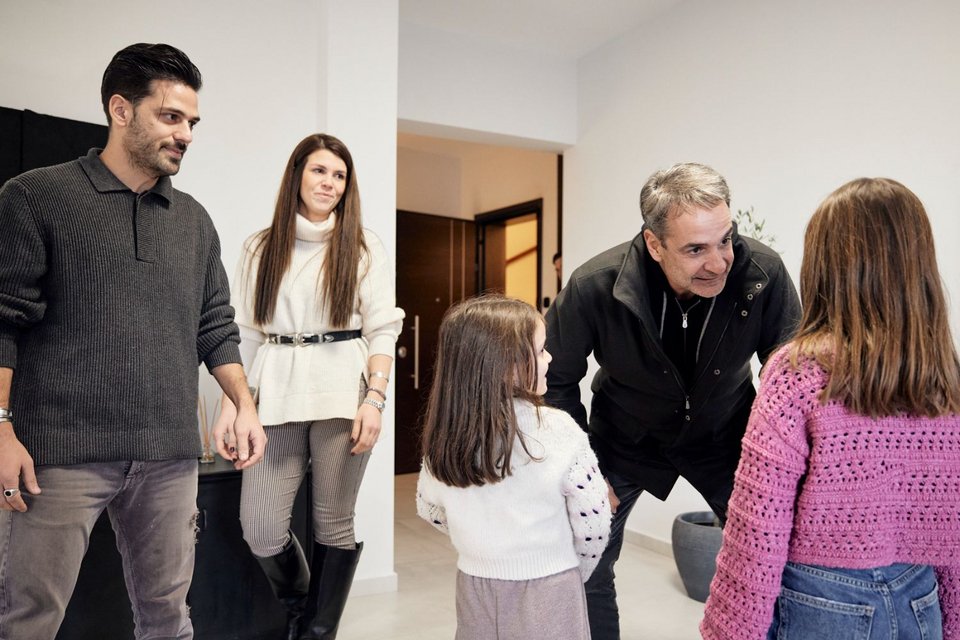 Με ένα νεαρό ζευγάρι με δύο παιδιά, που απέκτησαν το δικό τους σπίτι στο Γαλάτσι ωφελούμενοι από το πρόγραμμα «Σπίτι μου», συναντήθηκε ο πρωθυπουργός Κυριάκος Μητσοτάκης.
