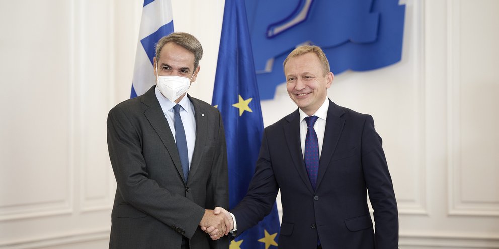 Ο Κυριάκος Μητσοτάκης συναντήθηκε το πρωί με τον Ευρωπαίο Επίτροπο για τον Προϋπολογισμό, την Καταπολέμηση της Απάτης και τη Δημόσια Διοίκηση Piotr Serafin, στο Μέγαρο Μαξίμου.