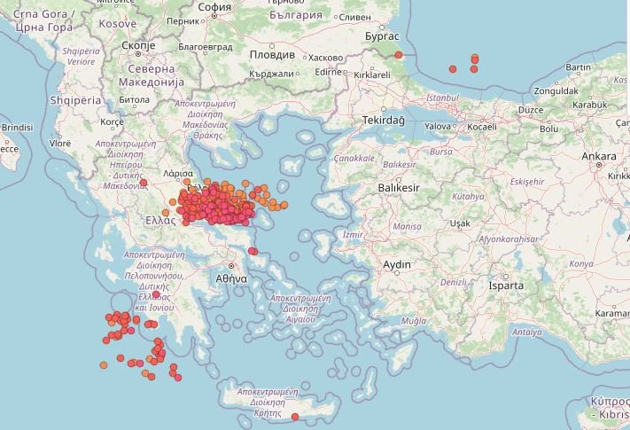 Σύμφωνα με τον χάρτη του meteo η Μαγνησία σαρώθηκε μέχρι τις 5 το πρωί από τους κεραυνούς. Τα δεδομένα τα οποία παρουσιάζονται στον χάρτη προέρχονται από το δίκτυο ανίχνευσης αστραπών ΖΕΥΣ το οποίο λειτουργεί το Εθνικό Αστεροσκοπείο Αθηνών. Το δίκτυο περιλαμβάνει έξι δέκτες στην Ευρώπη (Chibolton στην Αγγλία, Roskilde στη Δανία, Ιάσιο στη Ρουμανία, Αλεξάνδρεια στην Αίγυπτο, Λάρνακα στην Κύπρο και Mazagon στην Ισπανία).