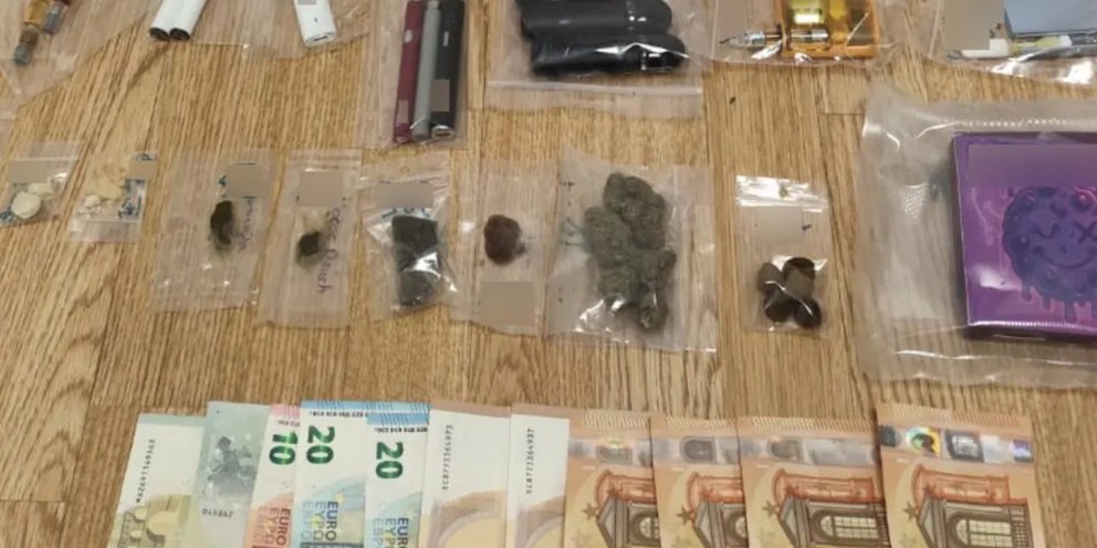 Κατά την διάρκεια της κατοικον έρευνας μεταξύ άλλων βρέθηκαν και κατασχέθηκαν νάιλον συσκευασία με ακατέργαστη κάνναβη7 γραμμαρίων, 7 νάιλον συσκευασίες με κατεργασμένη κάνναβη (σοκολάτα) 22,6 γραμμαρίων, συνολικά 14 συσκευές ατμίσματοςμάρκας με περιεχόμενο δραστικά συστατικά της κάνναβης, 7 αμπούλες με περιεχόμενο δραστικά συστατικά της κάνναβης, 2 σύριγγες με περιεχόμενο δραστικά συστατικά της κάνναβης.