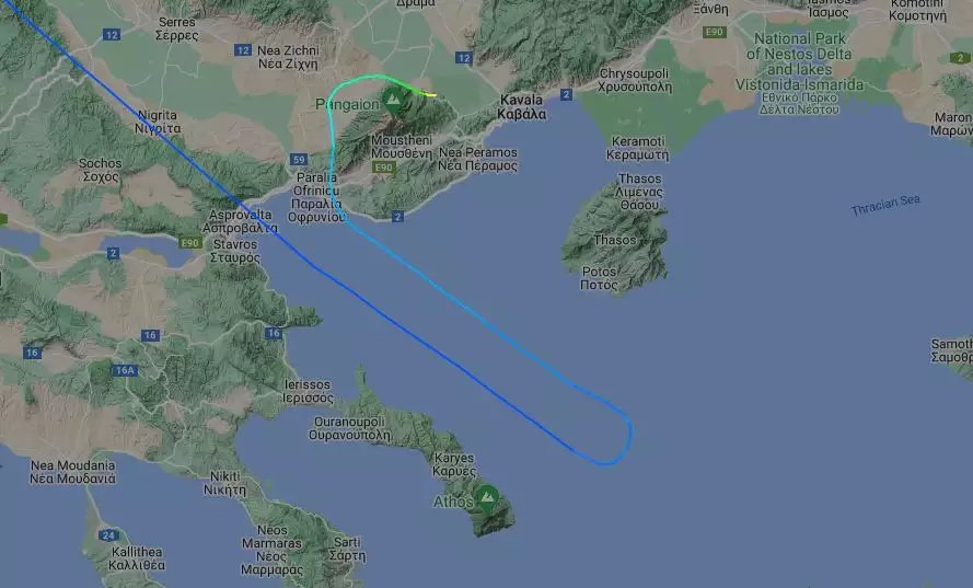 Οπως έχει καταγραφεί το αεροσκάφος με 8 μέλη πληρώματος, κάνει στροφή 180 μοιρών ενώ πετούσε πάνω από τη θάλασσα κοντά στο όρος Αθως με κατεύθυνση προς τη Χρυσούπολη.
